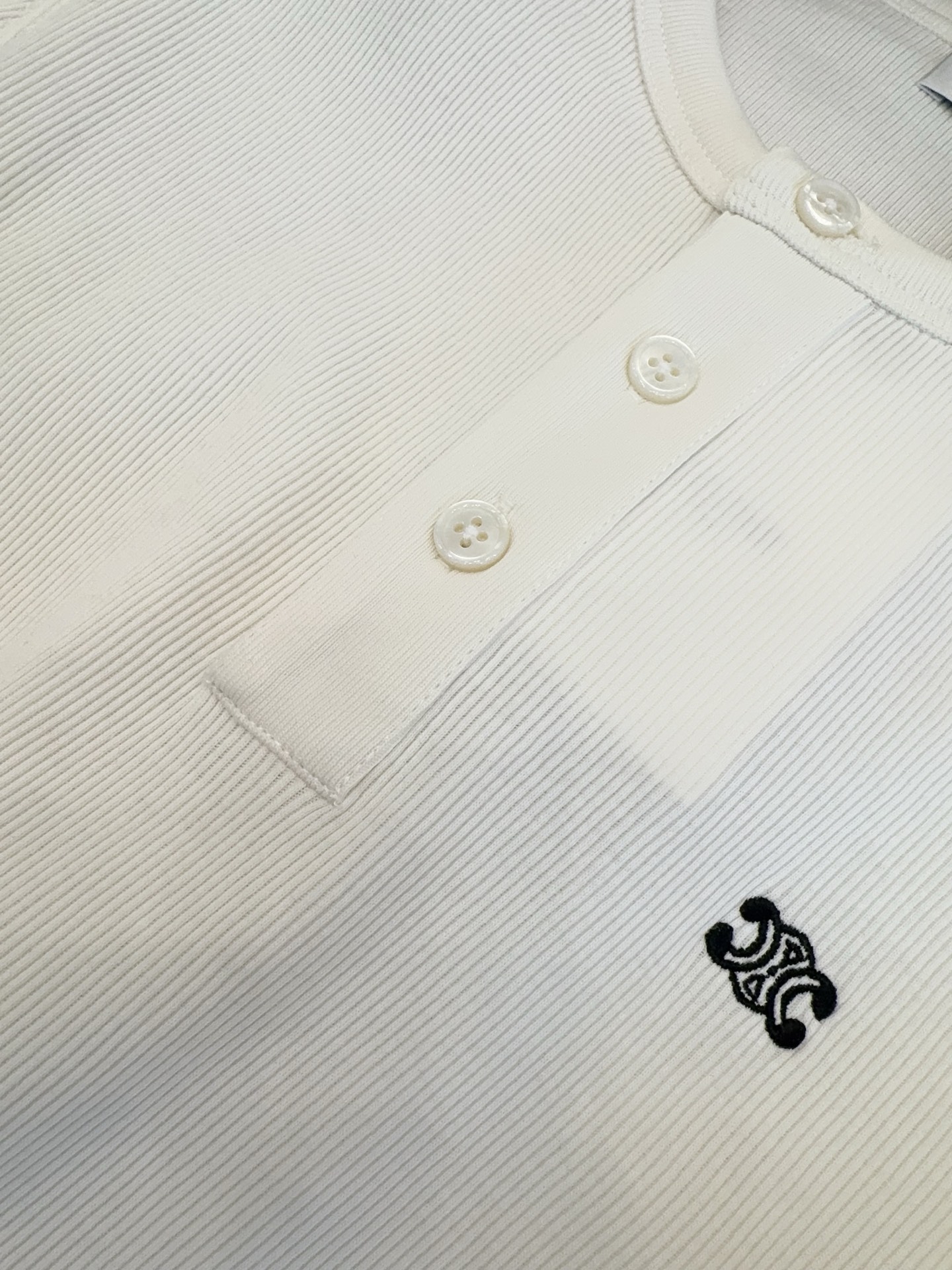 / 셀린느 트리오페 자수 코튼 남성 긴팔 티셔츠 오프화이트