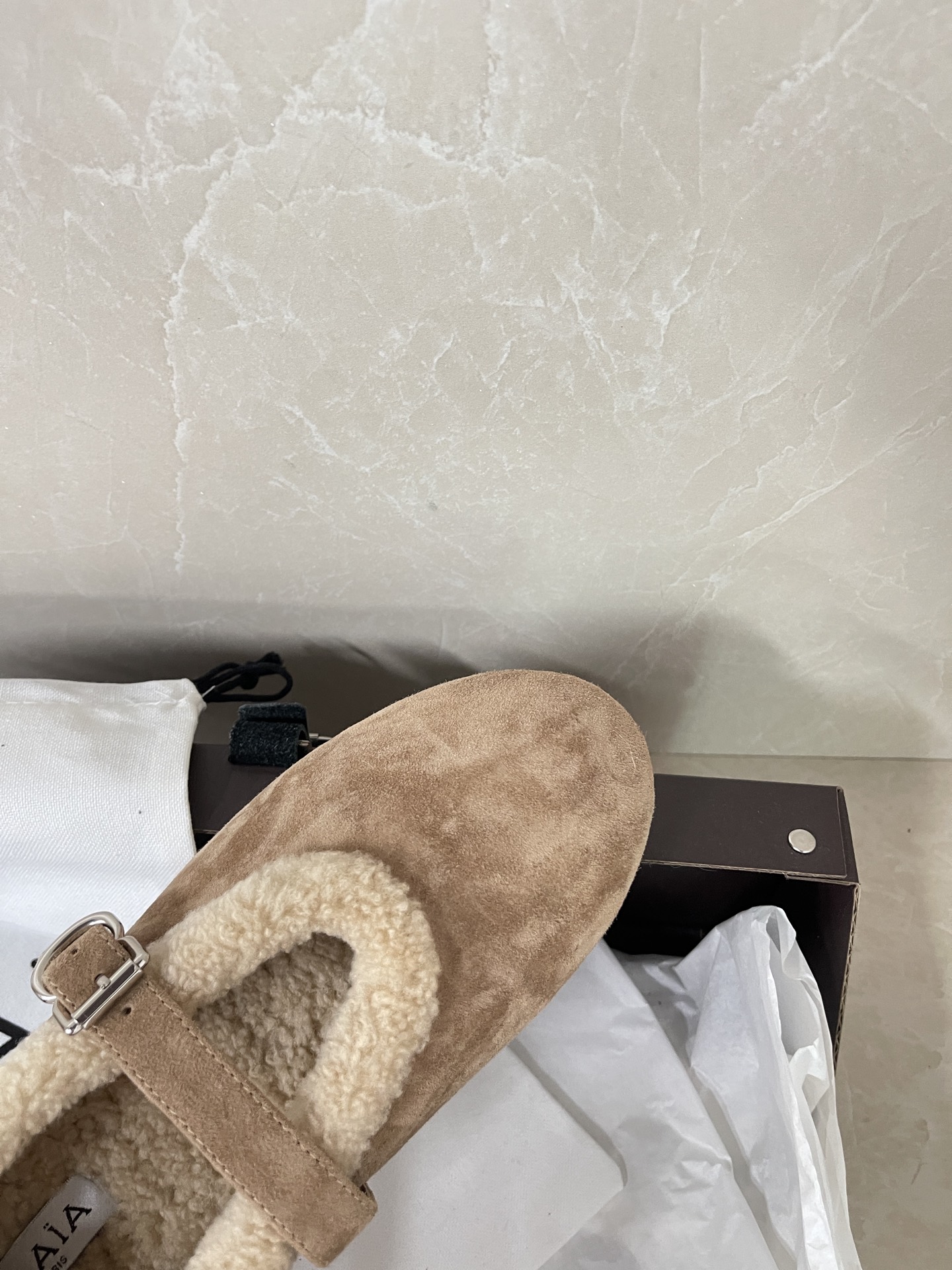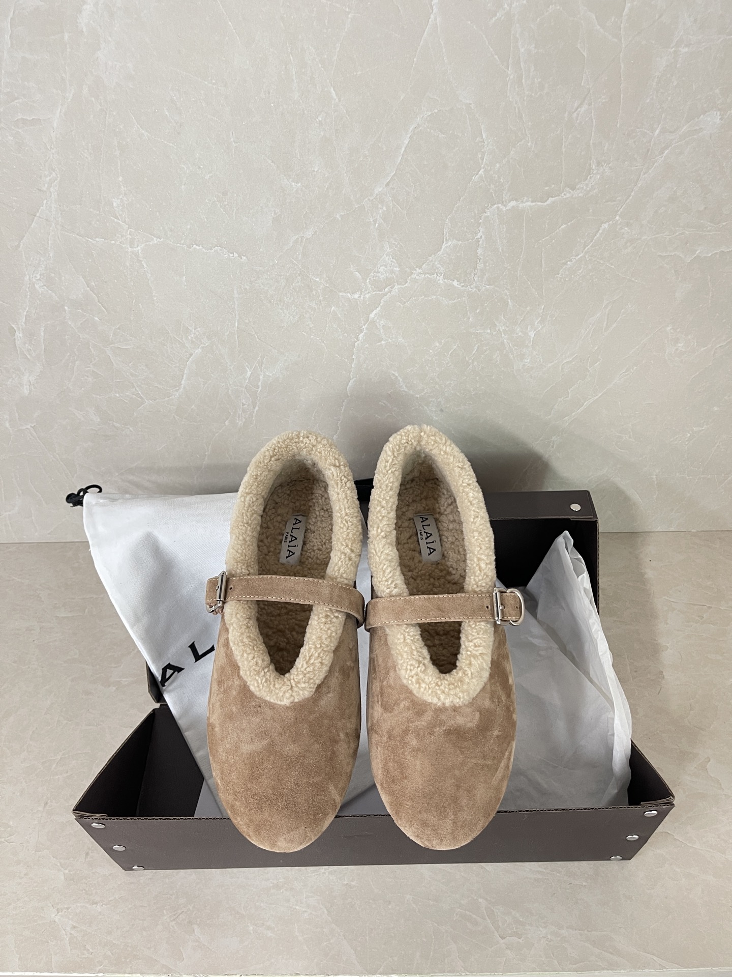 알라이아 메리노 시어링 메리제인 플랫슈즈 AA3A029I048