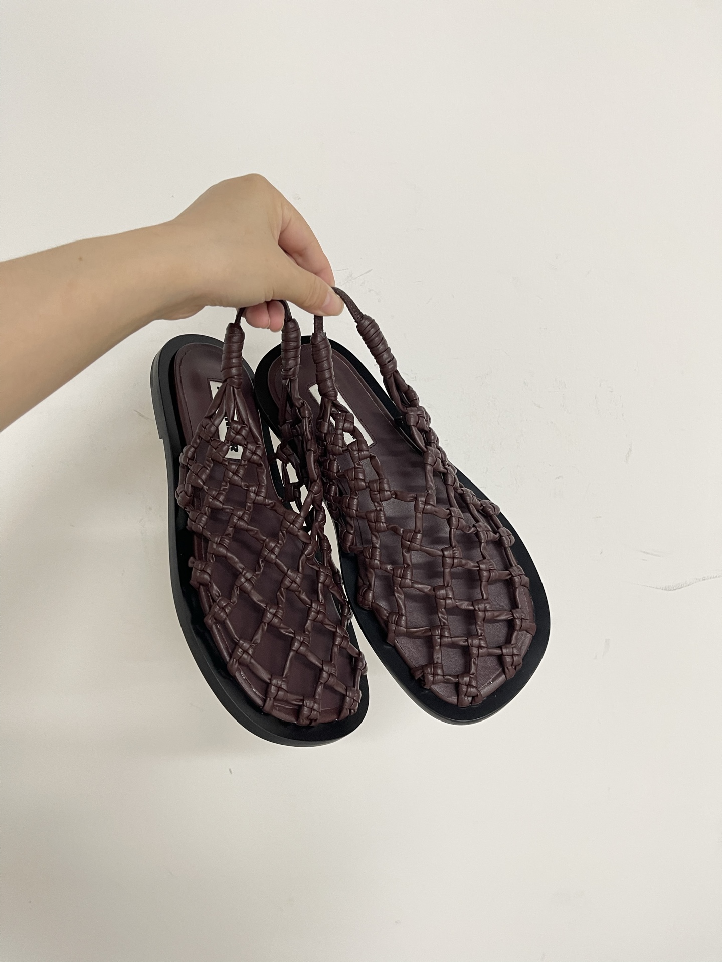 질샌더 가죽 크로셰 메시 발레리나 슬링백 플랫 샌들