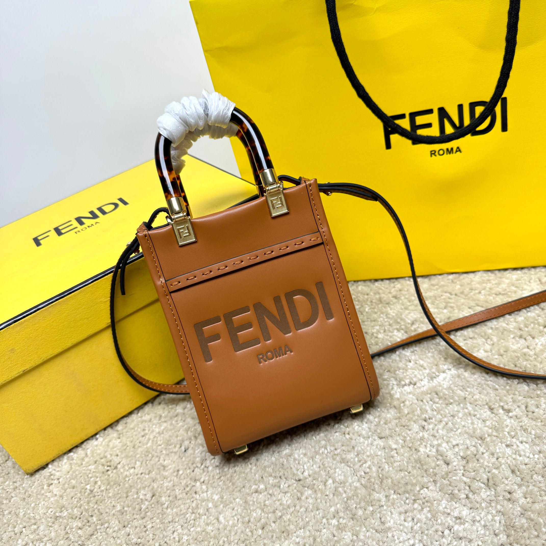 / 펜디 선샤인 미니쇼퍼 로고 토트백 8BS051