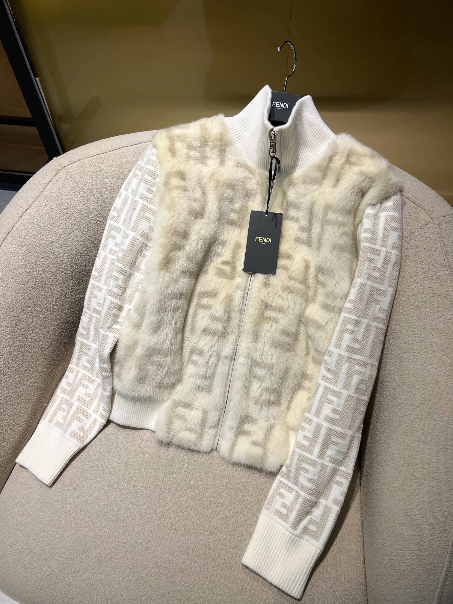 / 펜디 화이트 밍크 보머 자켓FNE16FAHOVF1FS7
