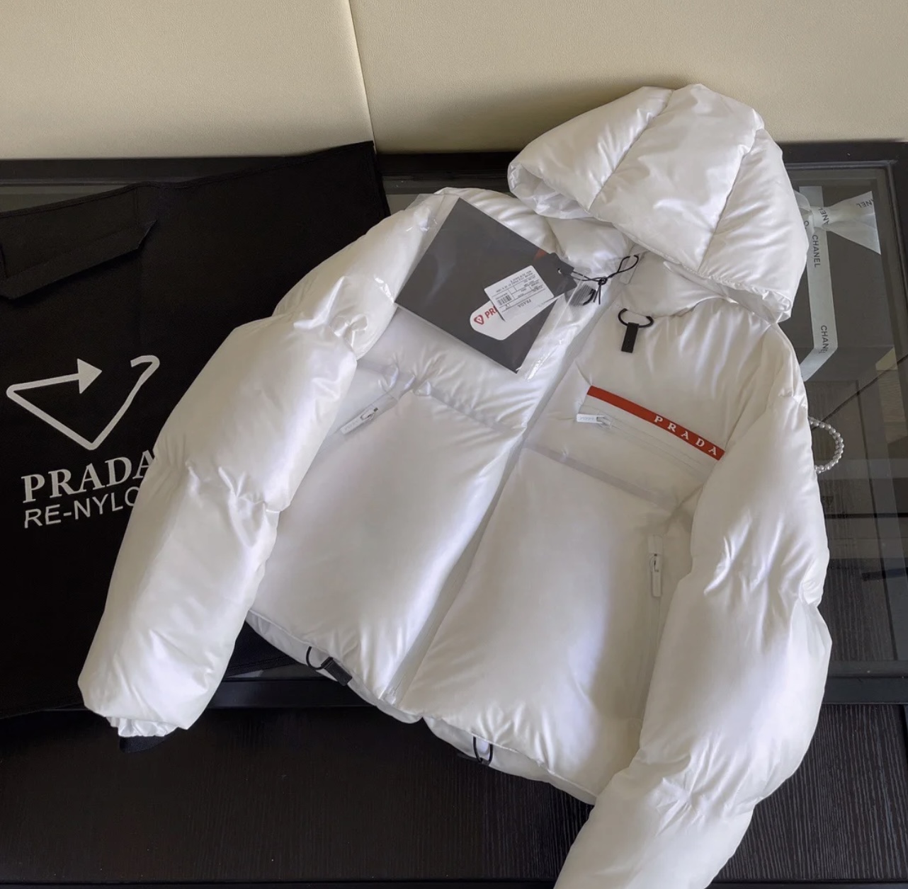 프라다 레드라인 로고 크롭 테크니컬 나일론 다운자켓 패딩 2컬러 29Z698