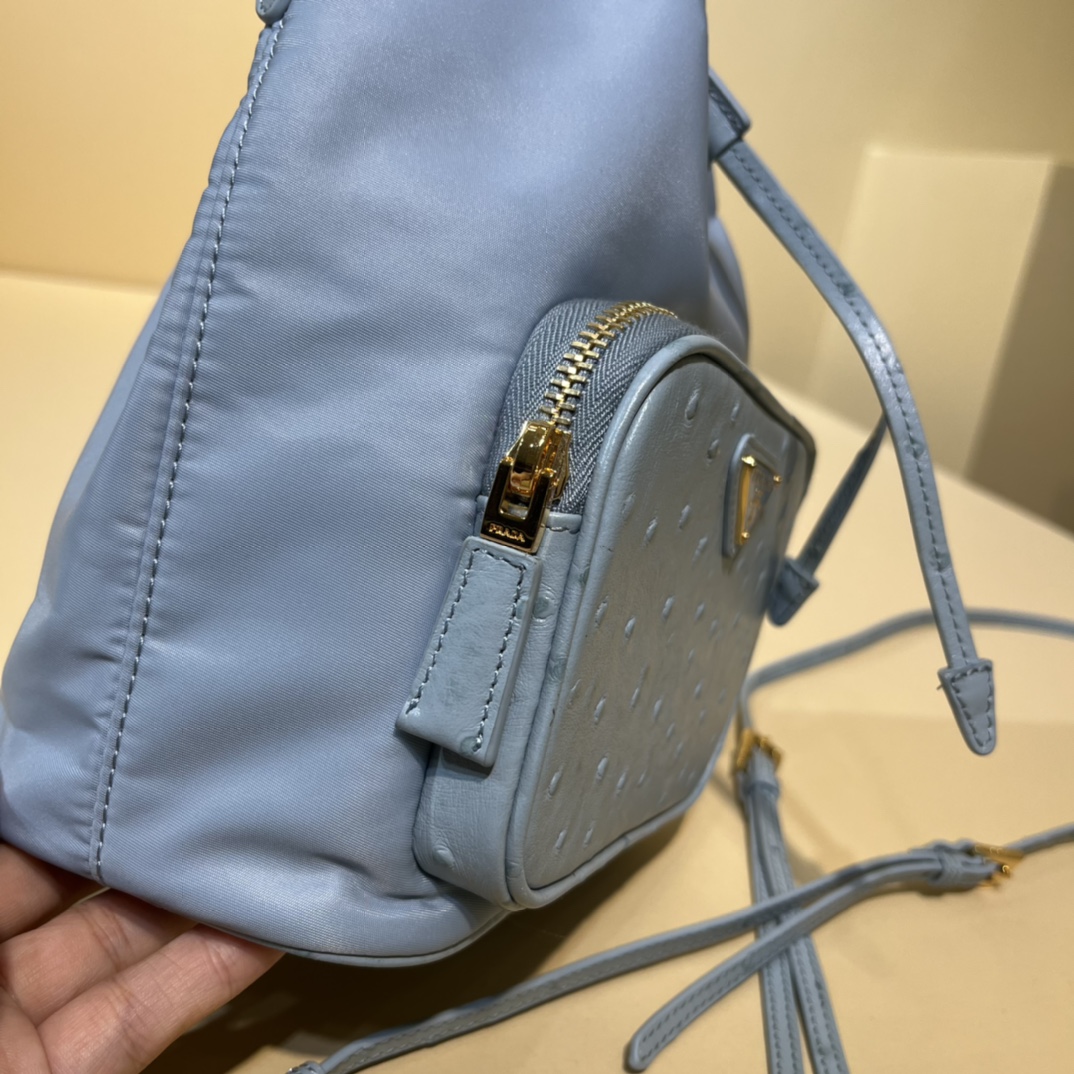 프라다 리나일론 및 타조 가죽 숄더백 버킷백 1BH038
