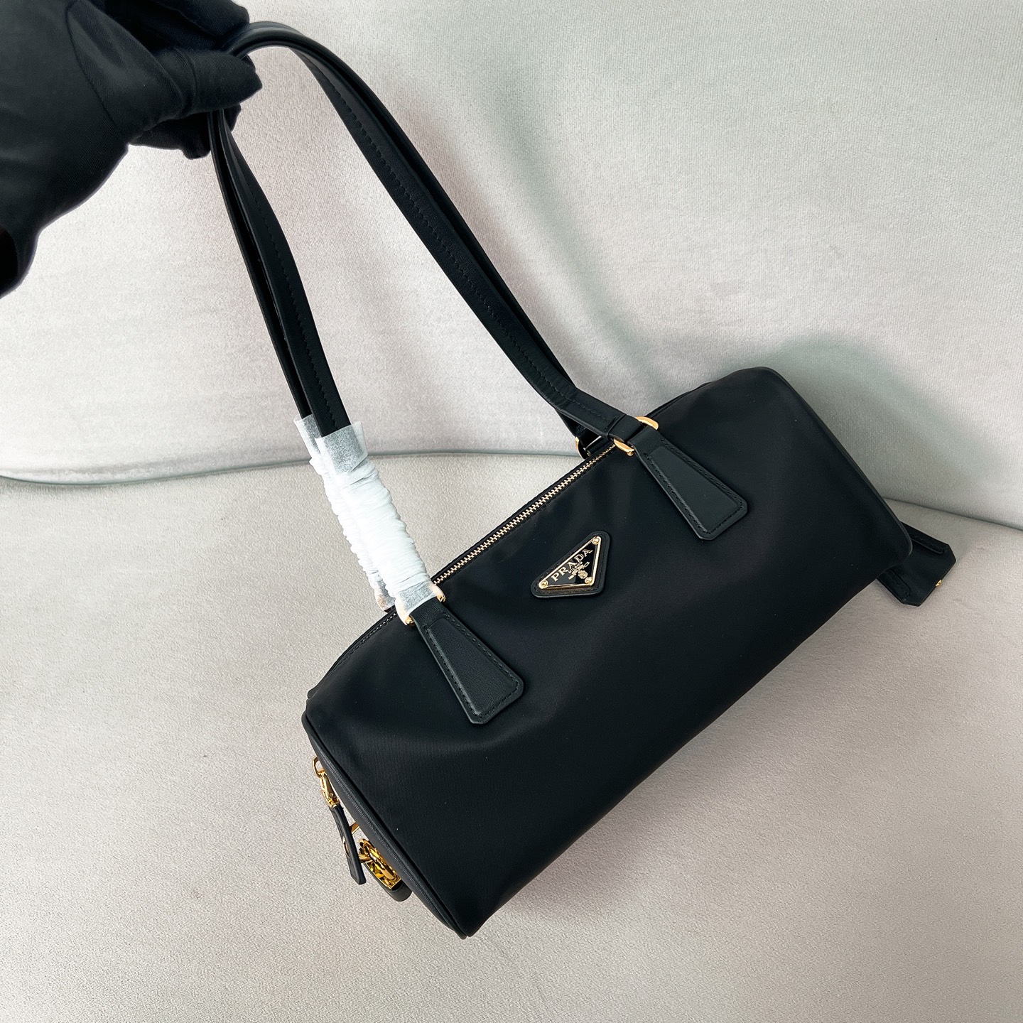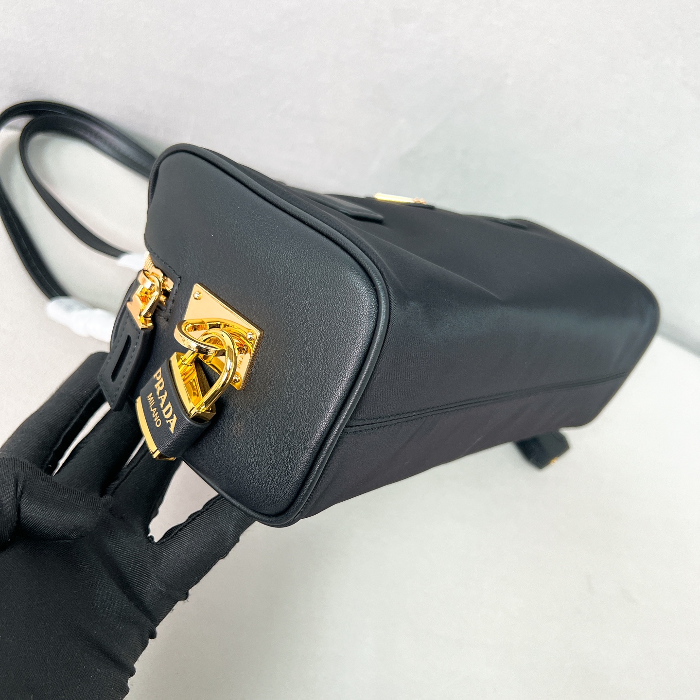 프라다 미디엄 리나일론 및 가죽 탑 핸들백 1BB127 수량