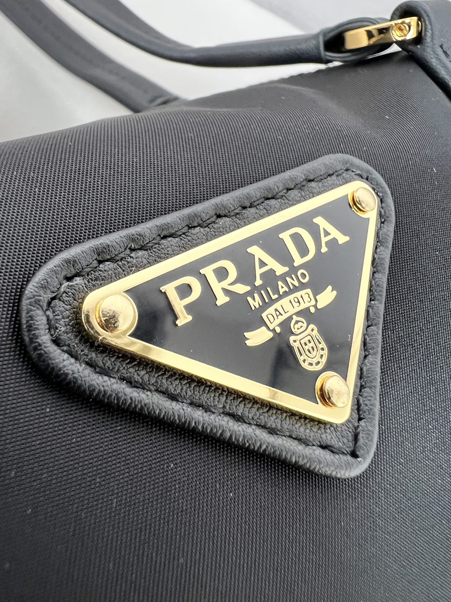 / 프라다 미디엄 리나일론 및 가죽 탑 핸들백 1BB127