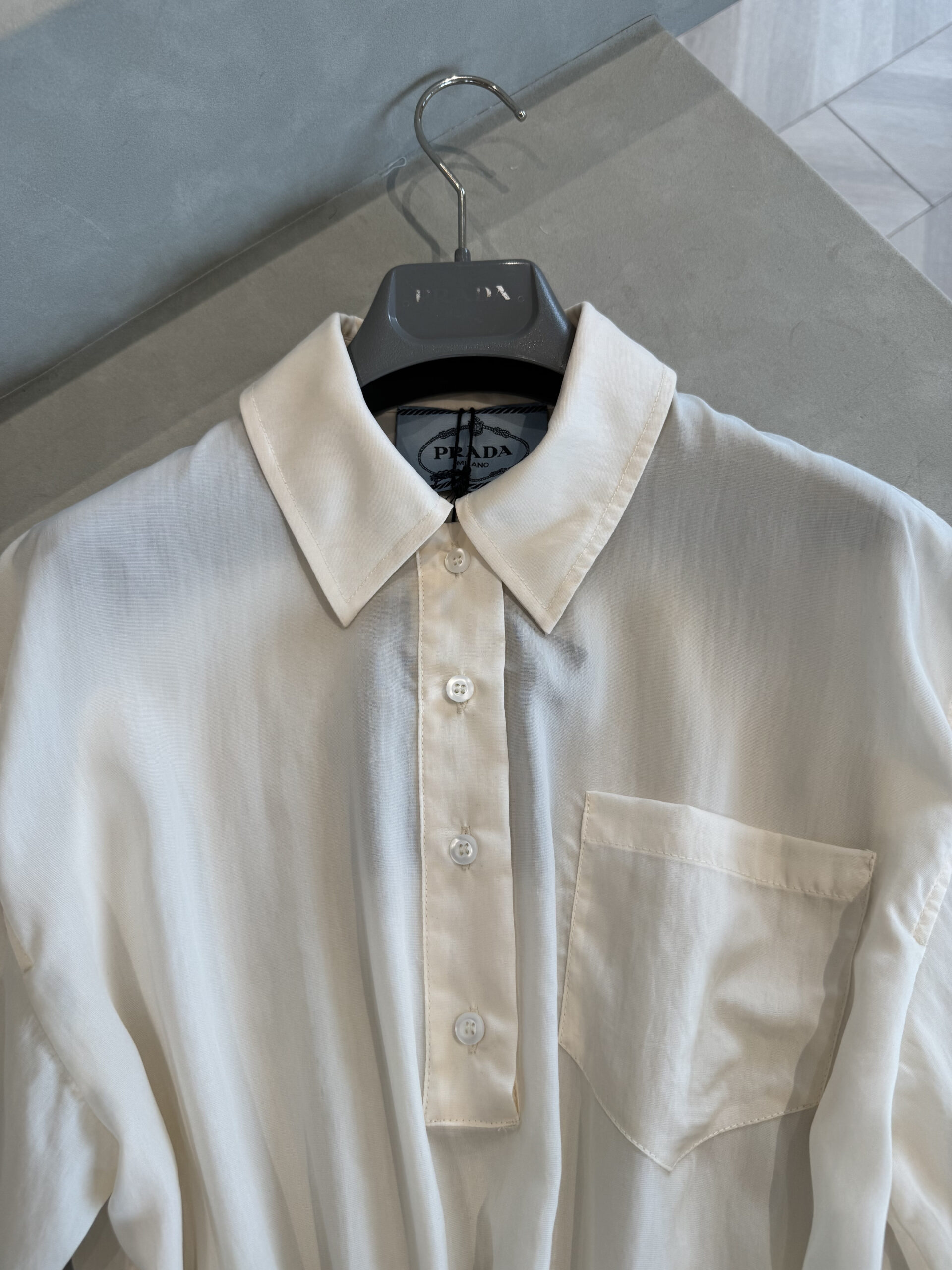 프라다 반팔 기능성 퐁제 셔츠 원피스 23X731
