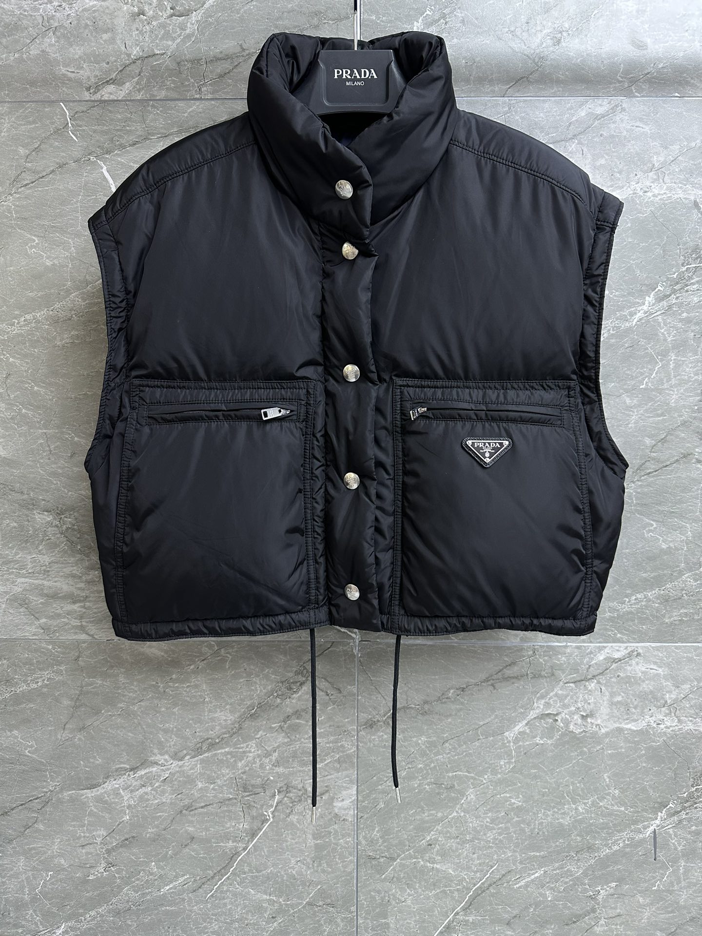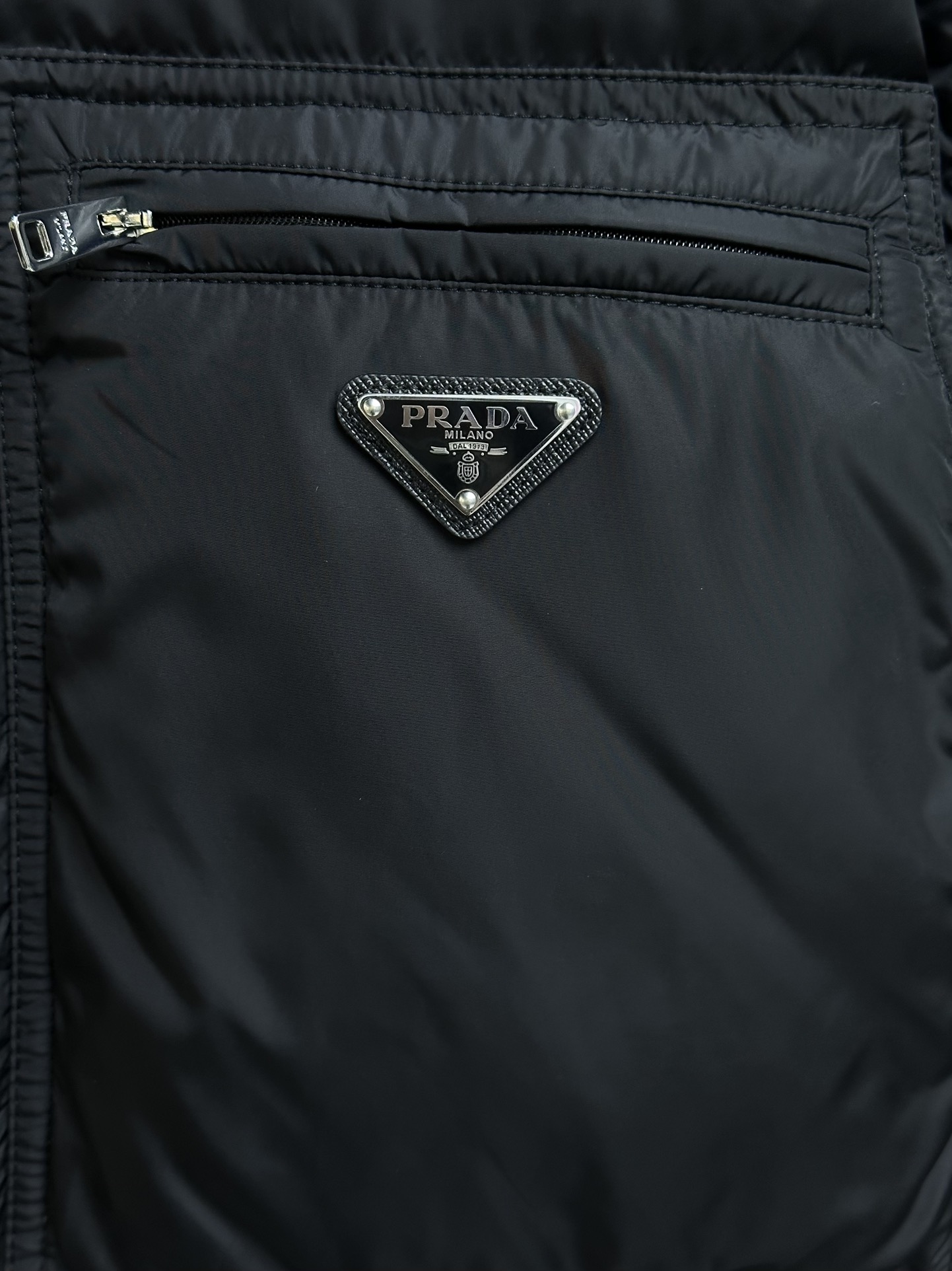 / 프라다 삼각로고 리나일론 크롭 패딩 블랙 29Y132