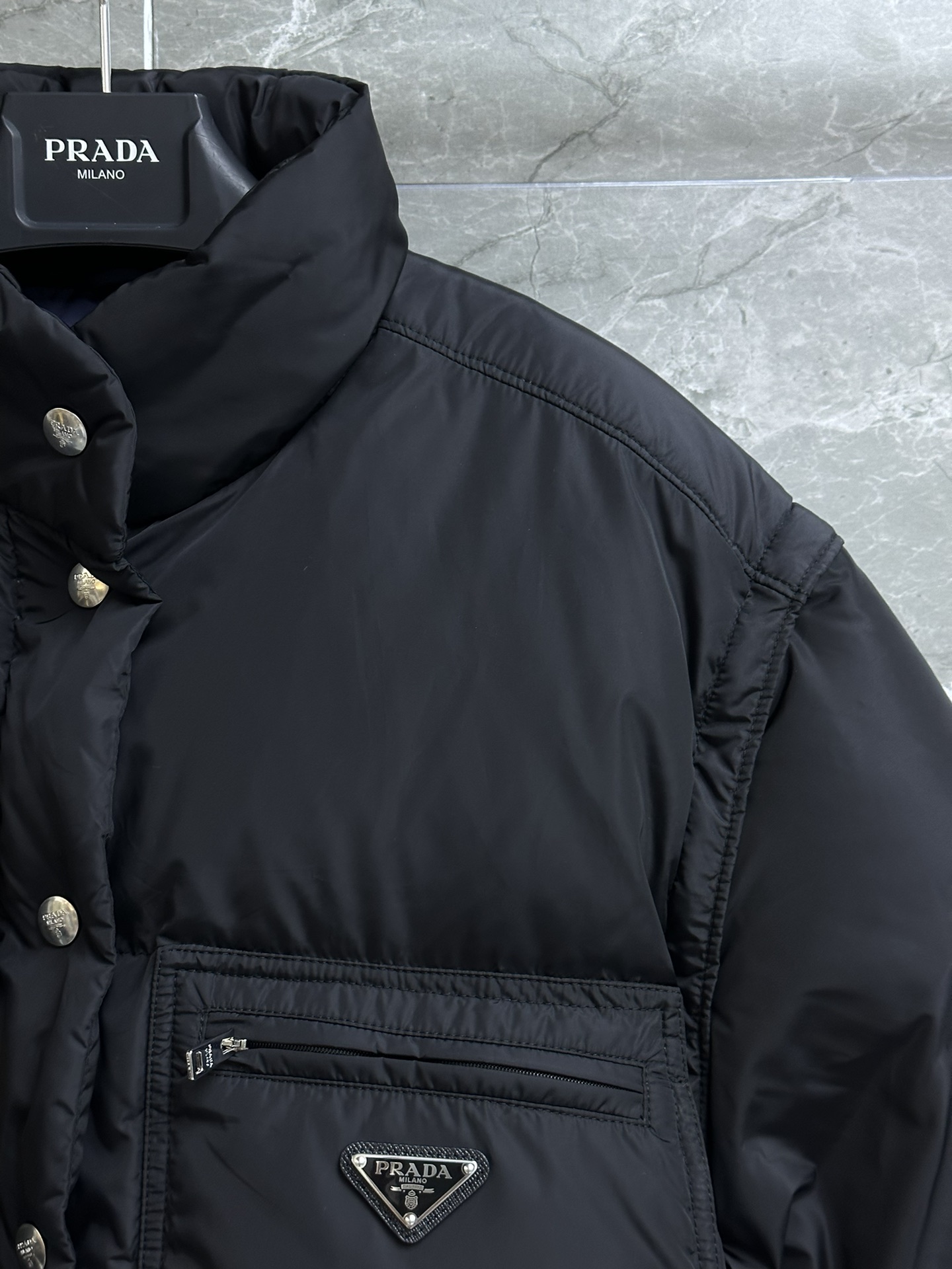 프라다 삼각로고 리나일론 크롭 패딩 블랙 29Y132 수량