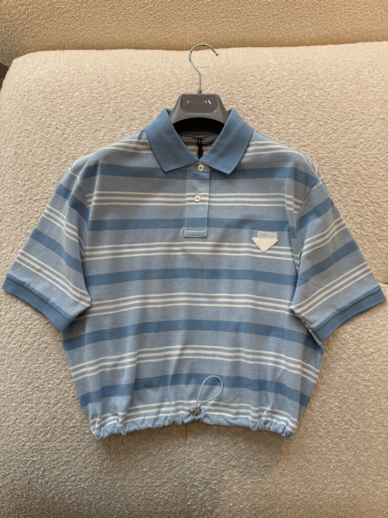 / 프라다 스트라이프 반팔 피케 폴로 셔츠 39609