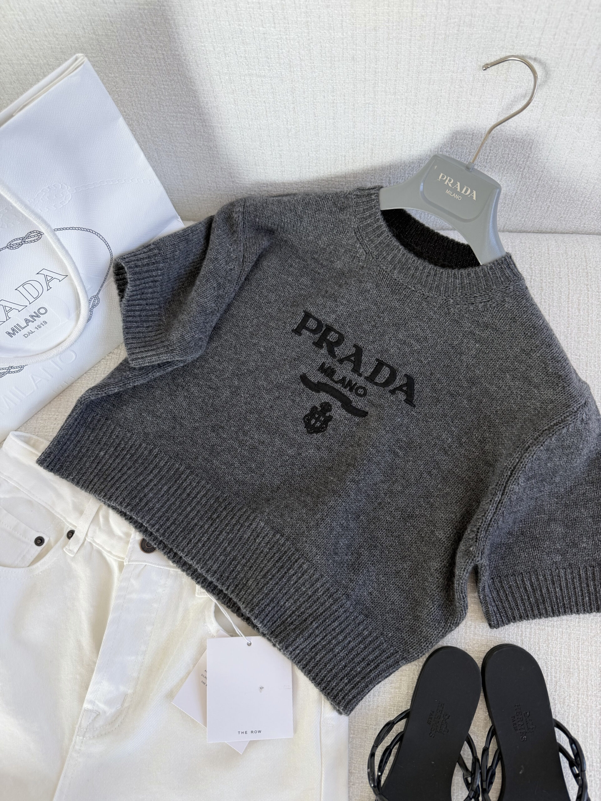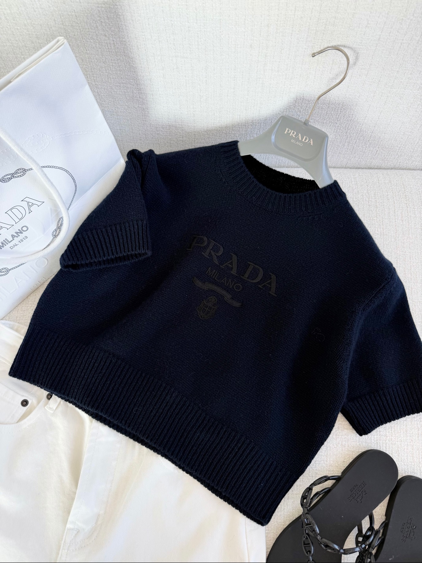 / 프라다 울 및 캐시미어 크루넥 반팔 니트 P24Z1U