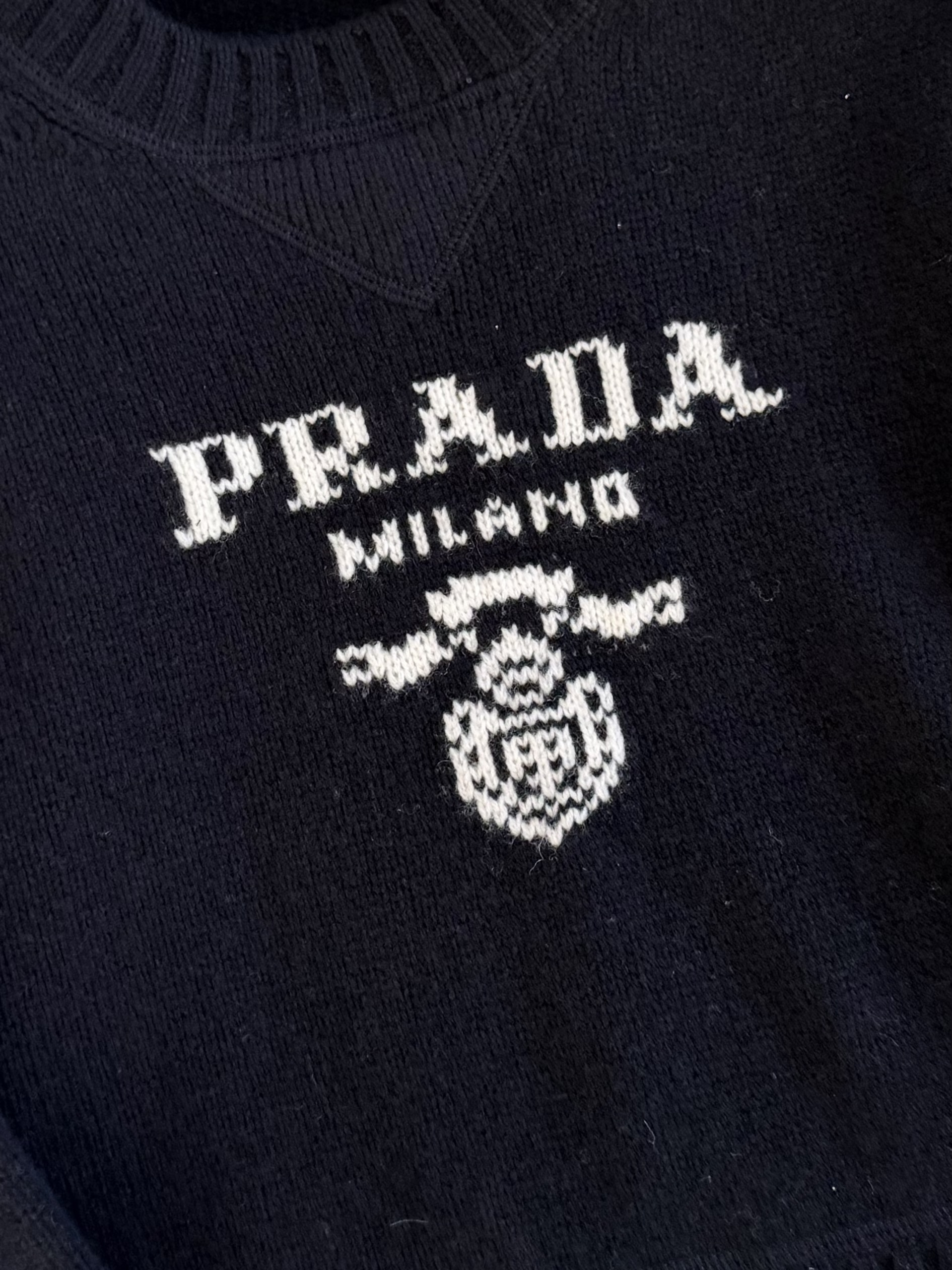 / 프라다 울 캐시미어 크루넥 크롭 니트 네이비 P24U1T