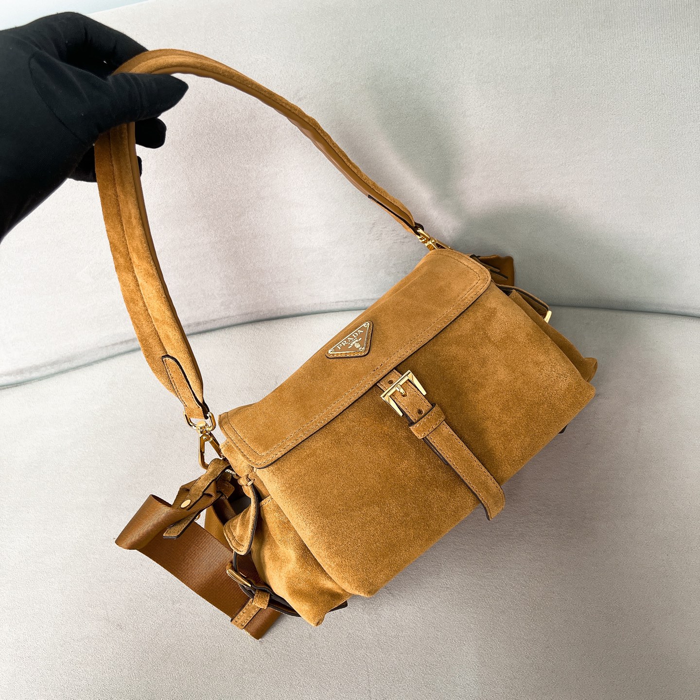 프라다 익스플로어 미디움 라지 스웨이드 숄더백 1BD394