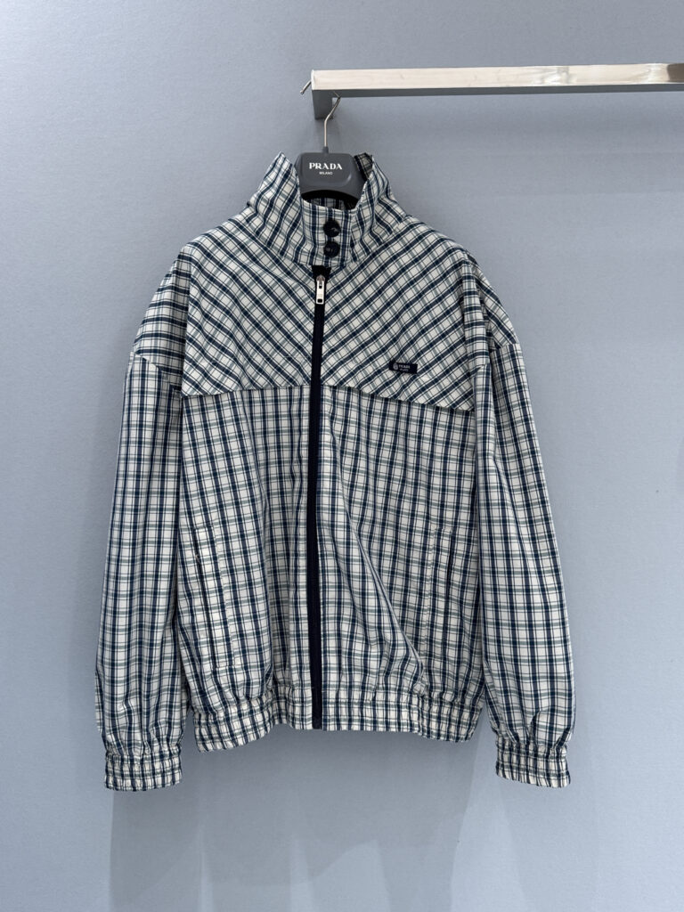 / 프라다 체크드 샴브레이 블루종 자켓 292358