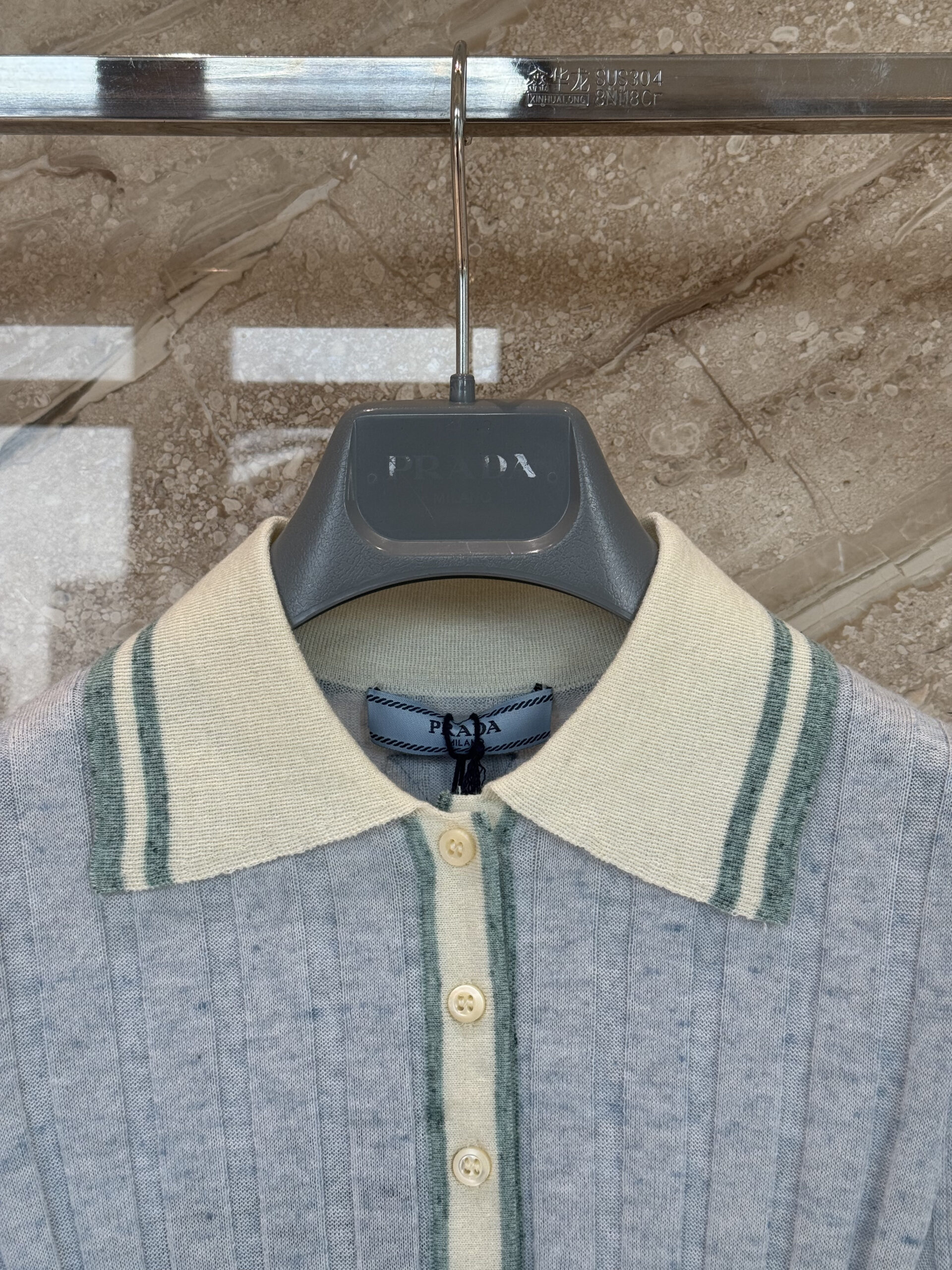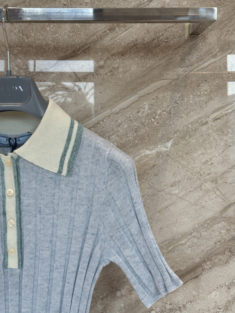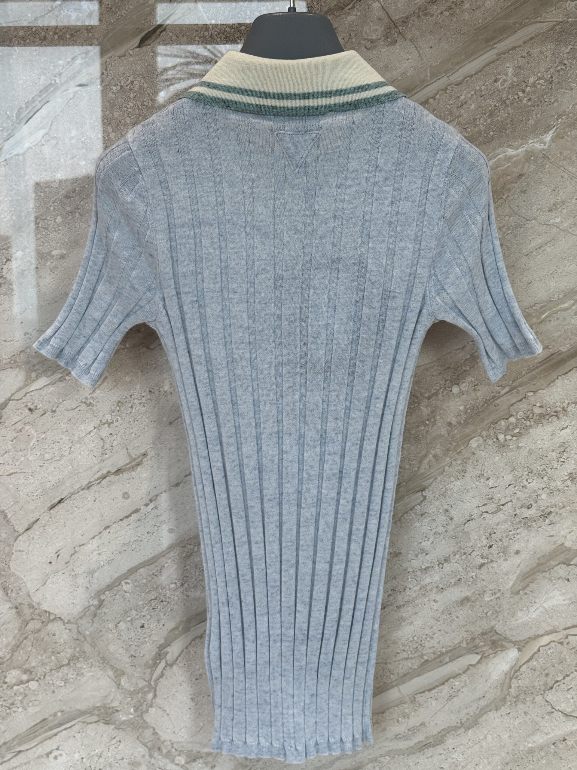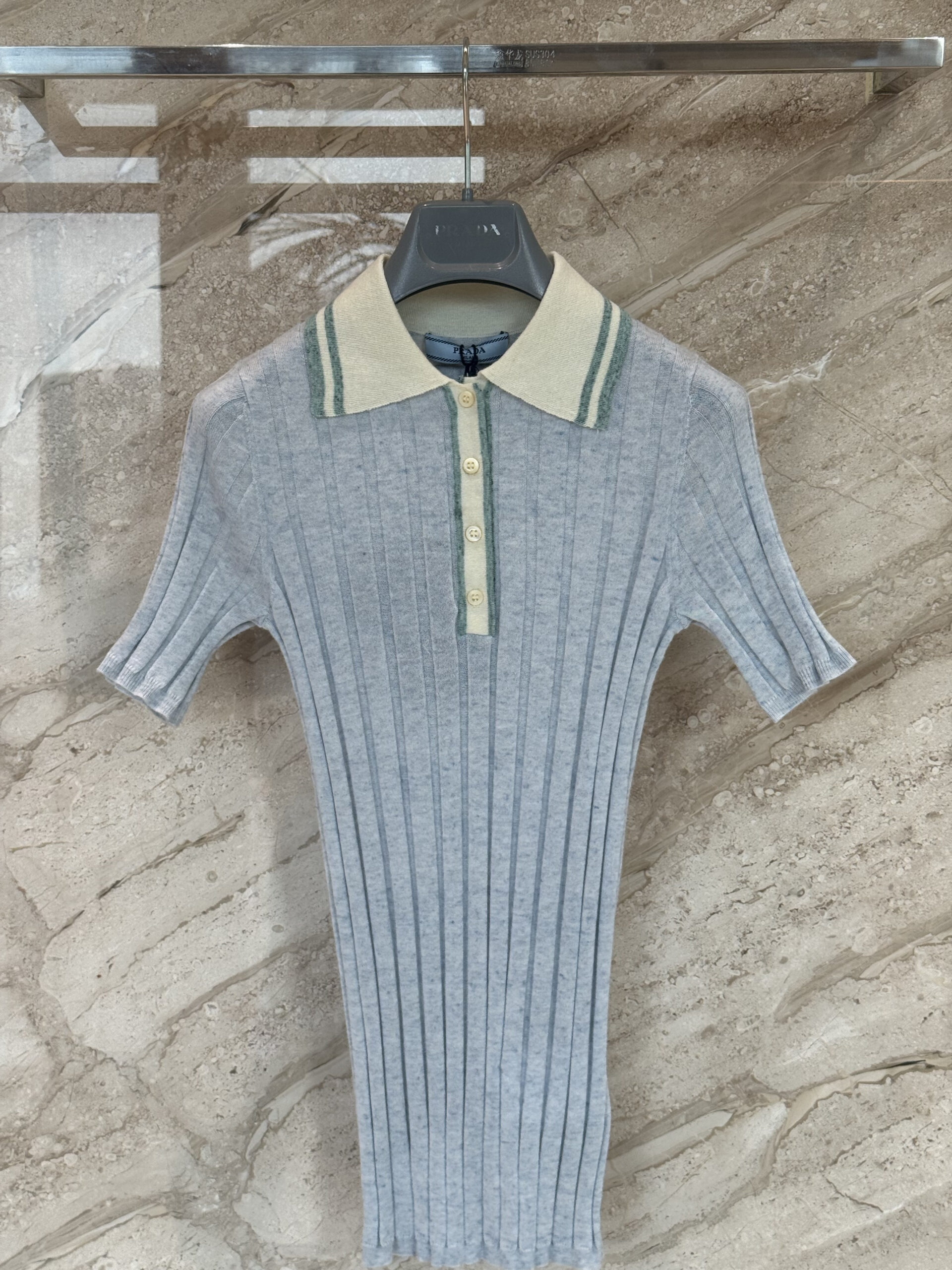 프라다 캐시미어 실크 및 리넨 폴로 반팔 니트 P24B3I