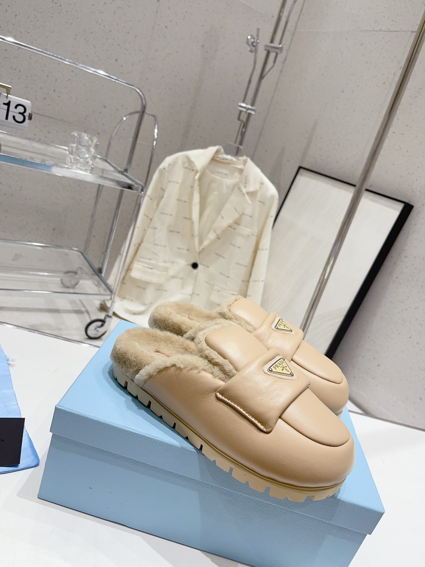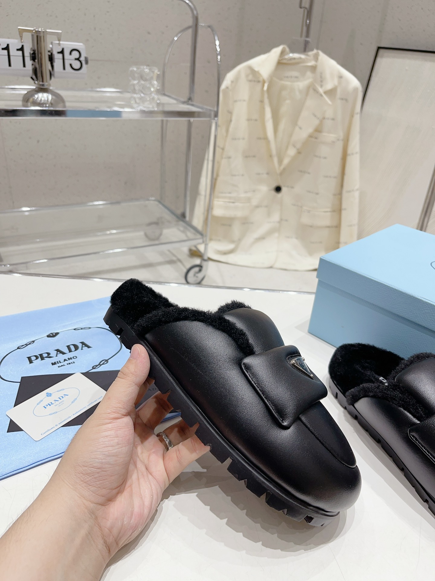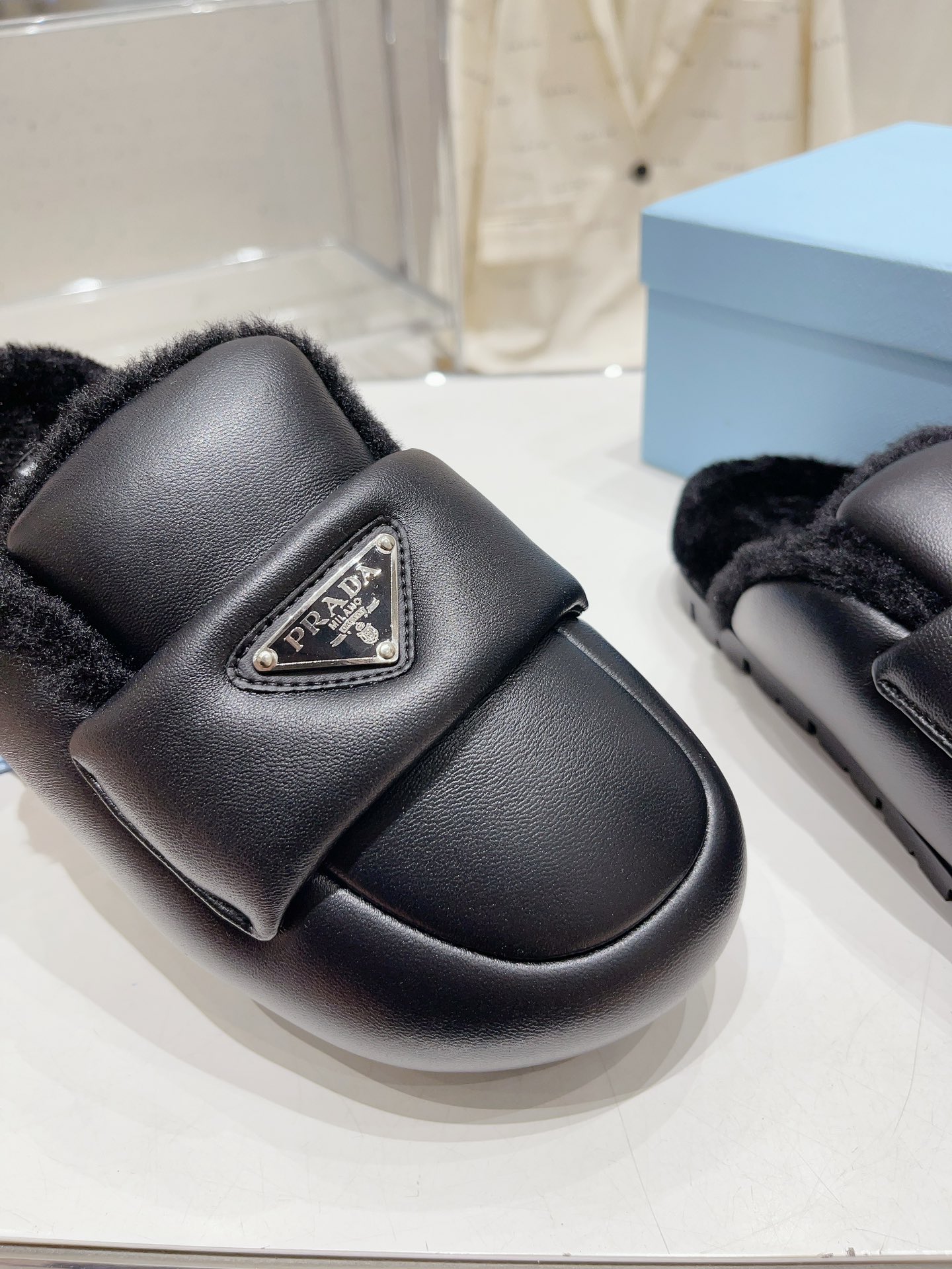 프라다 패딩 시어링 레더 뮬 1S084N 신발