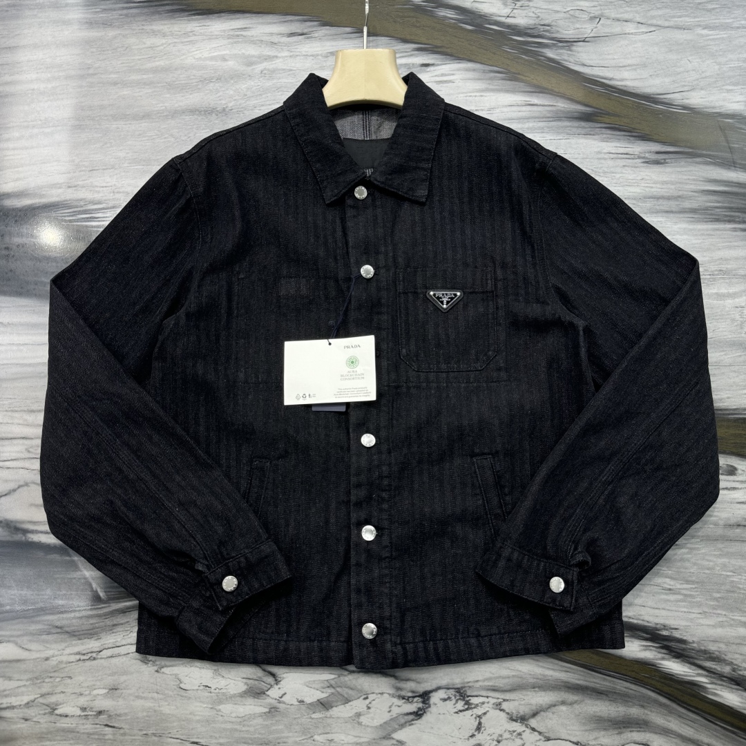 / 프라다 25SS 삼각로고 쉐브론 남성 데님 셔츠 블루종 자켓 GEB254