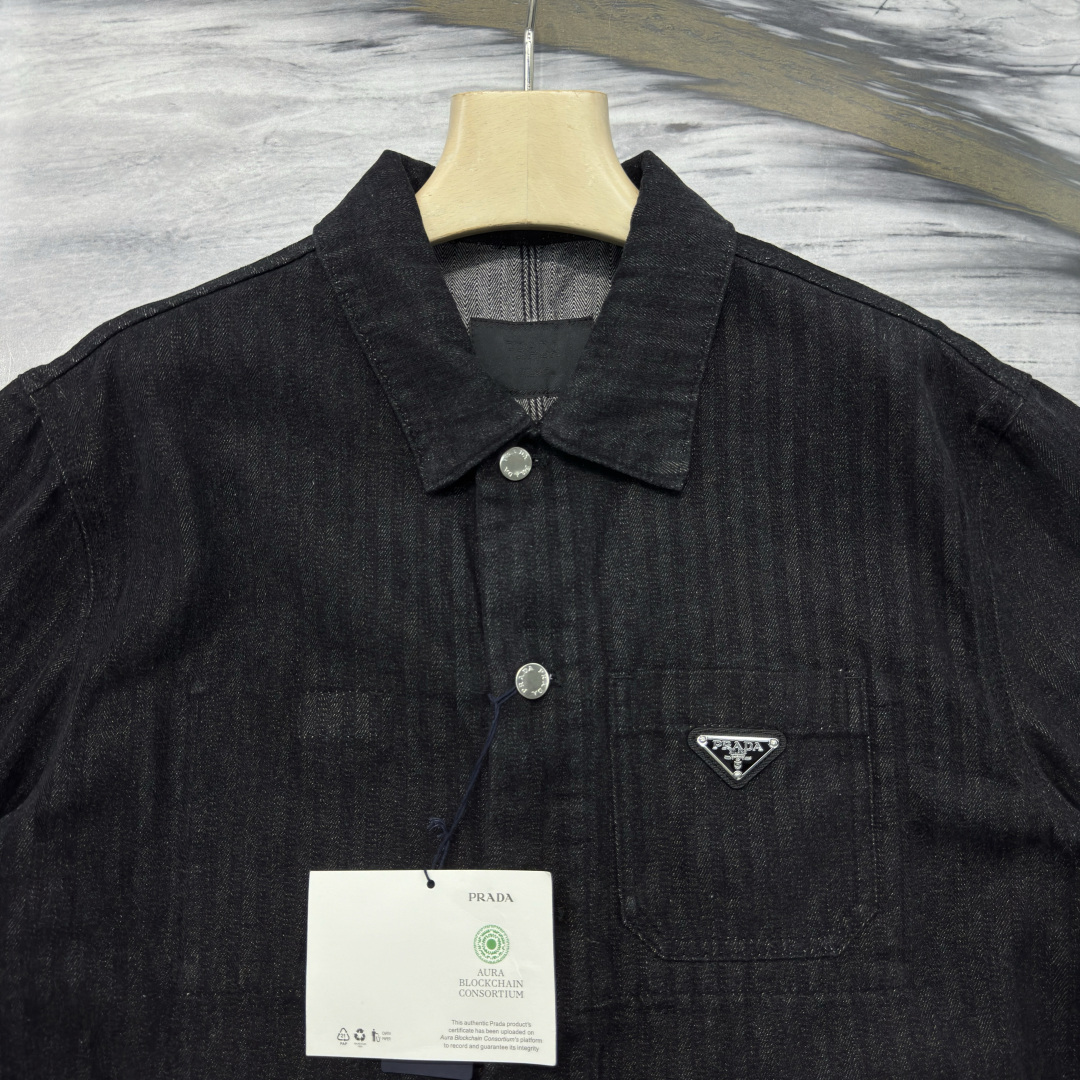 프라다 25SS 삼각로고 쉐브론 남성 데님 셔츠 블루종 자켓 GEB254